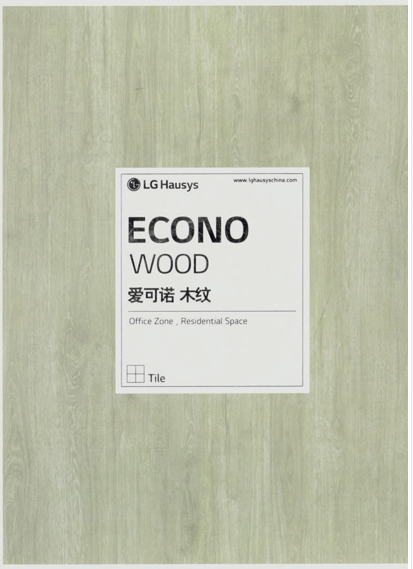 愛可諾木紋(ECONO WOOD)特點:大規格設計,充分體現紋理效果;逼真壓花和實木腳感;不使用有害的鄰苯二甲酸酯(DOP);使用場所:寫字樓、辦公室等辦公場所,使用地暖設施的住宅空間。